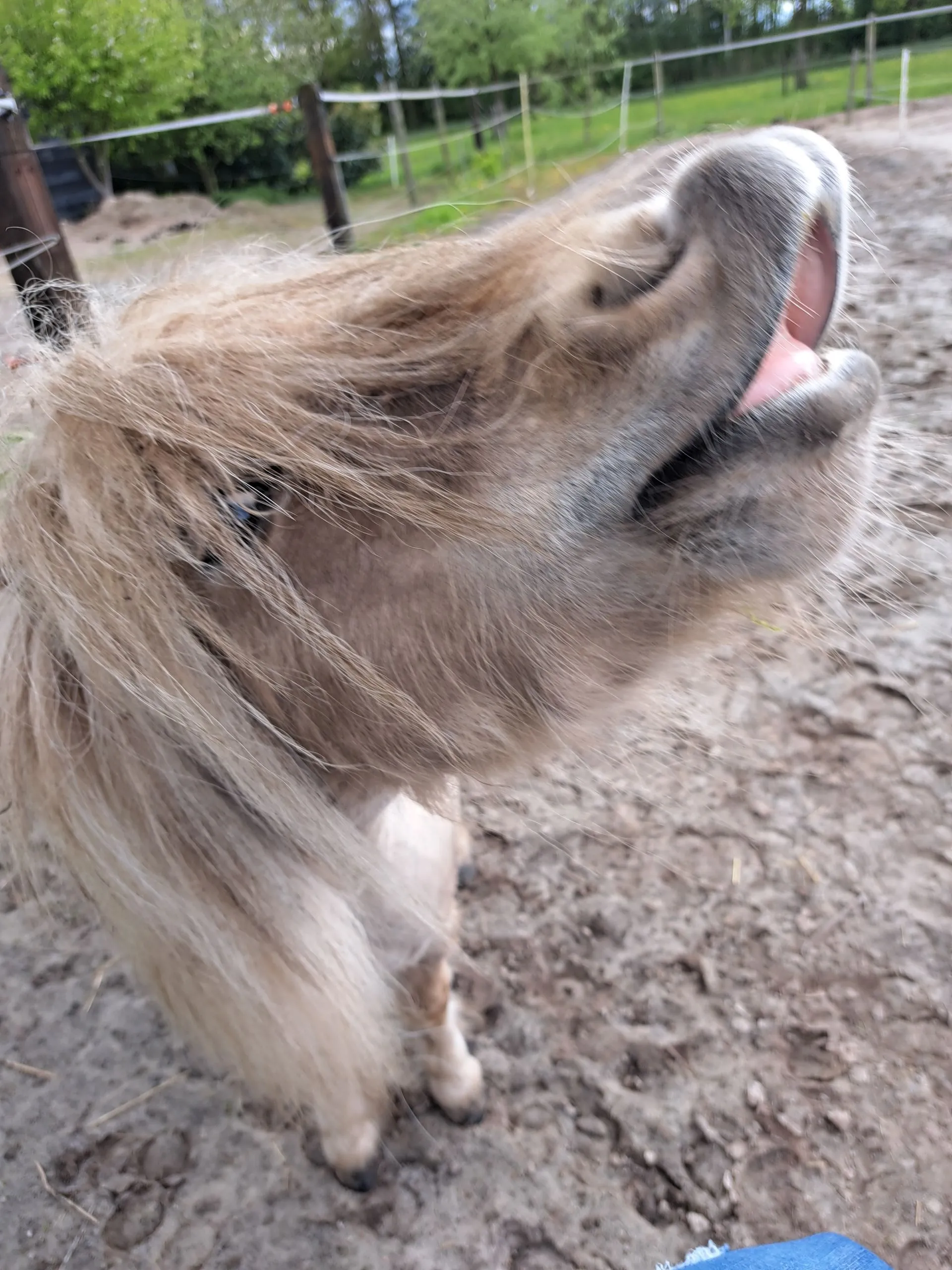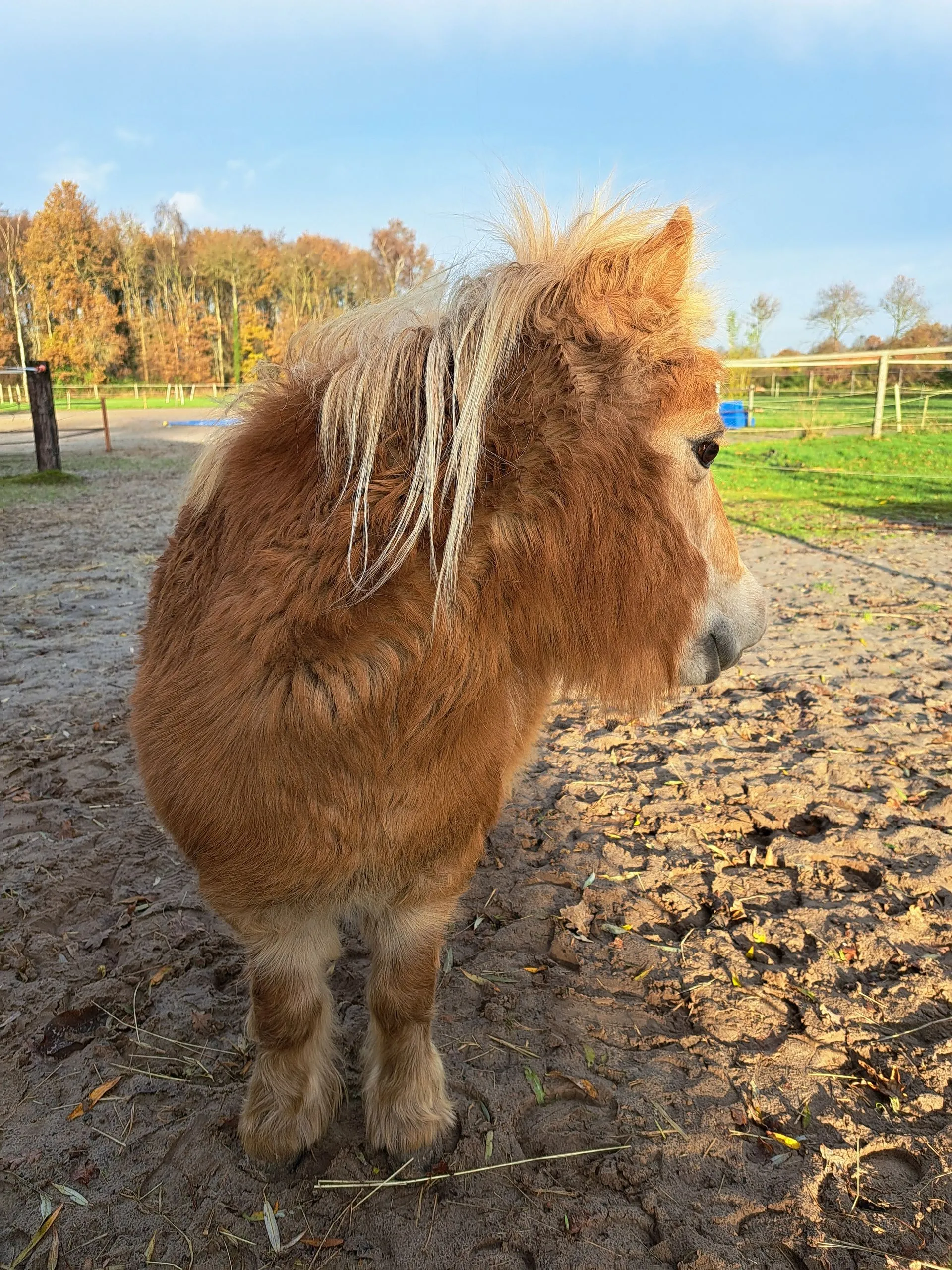 Ilse is onze oudste pony (16), zij is bij ons gekomen in 2018, drachtig van Romy. Ilse had weinig vertrouwen in mensen toen ze bij ons kwam. Gelukkig gaat dat steeds beter.