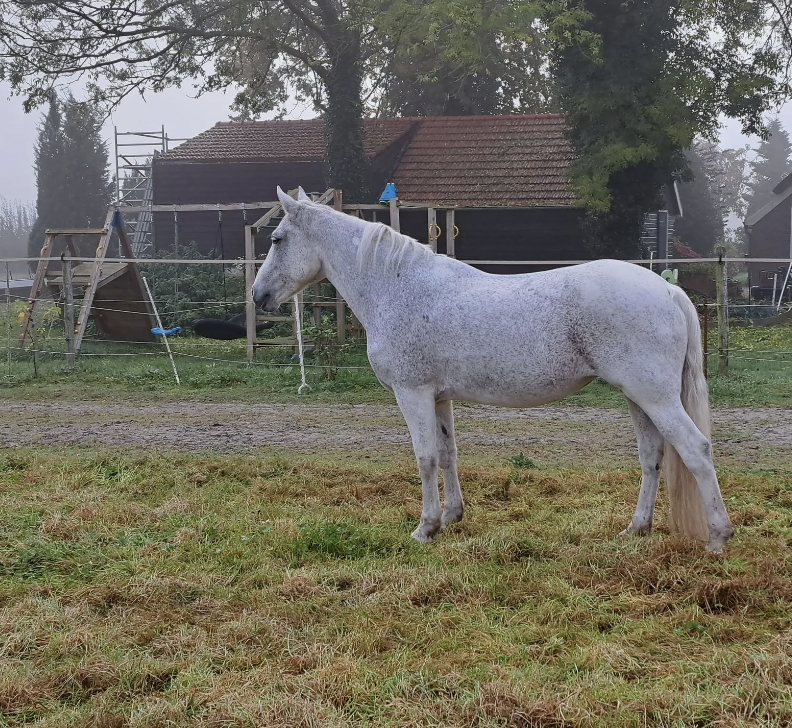 Melody is eind 2019 bij ons komen wonen. Zij is een Connemara en is geimporteerd uit Ierland. Zij is een mensgericht paard en er wordt met haar fanatiek gereden, naast haar werk als coachpaard.